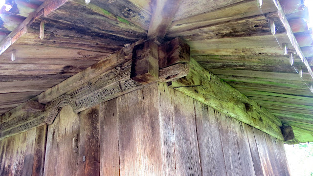 Horru del Curanderu. (Perviyao) Se encuentra en buen estado porque se ha renovado recientemente. La talla de los liños y la puerta de este hórreo es una joya. Arcos de 3 vueltas, punta de diamante, diente de sierra, espiga, rosetas hexapétalas, estrellas enmarcadas…